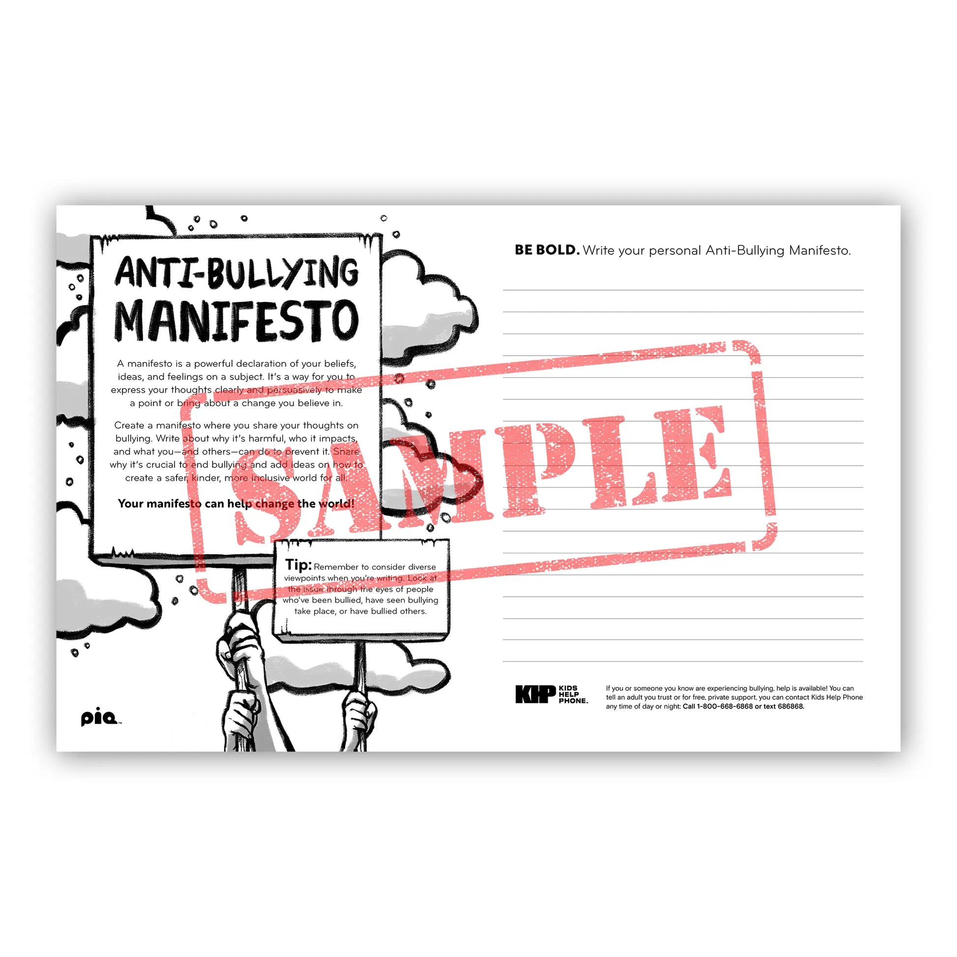 - 1, 2-Sided Activity Poster PDF: Engage students in arts-based anti-bullying activities with a customizable poster that students can take home. The high-resolution PDF comes with a license to print unlimited posters for your school.
