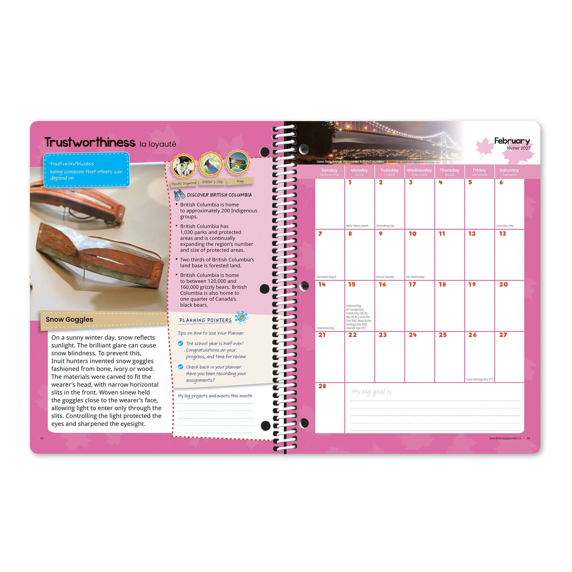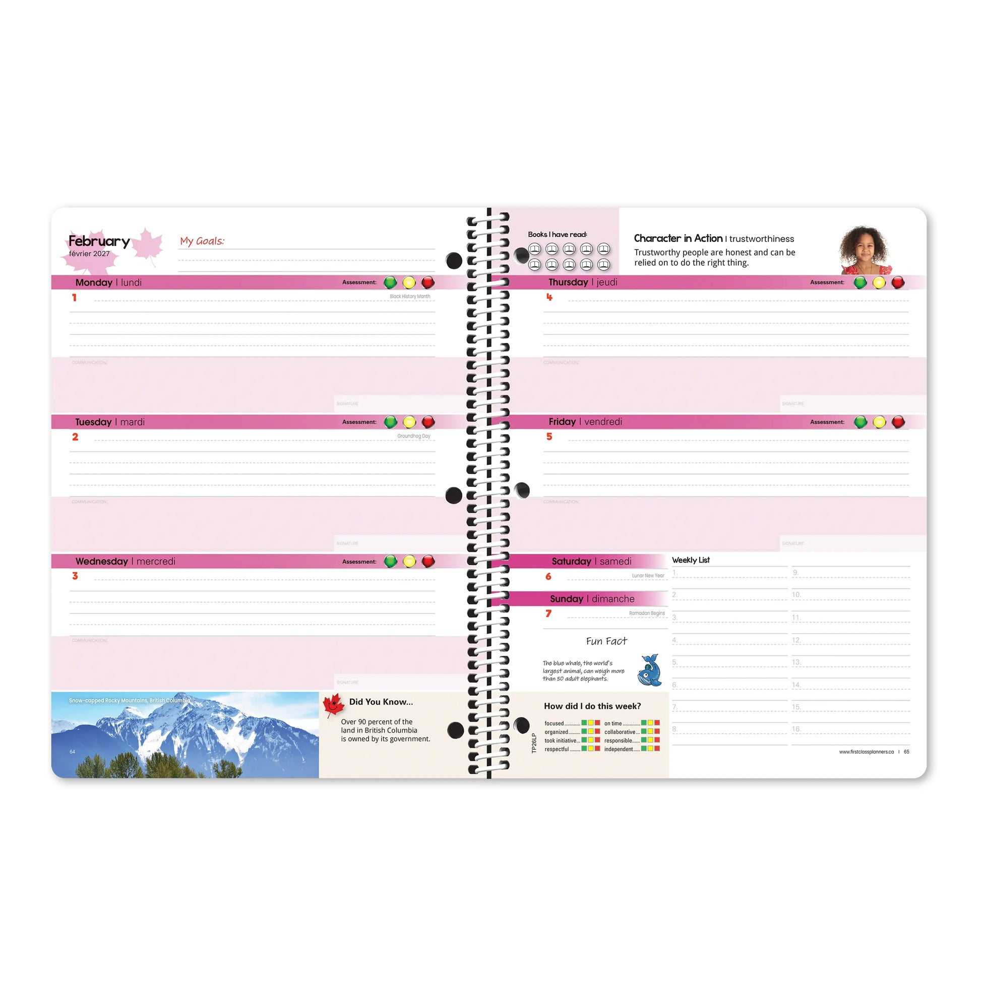 - “DID YOU KNOW?” CANADIAN FACTS: Fun facts and engaging insights about Canada appear throughout the planner, helping students learn something new every week.