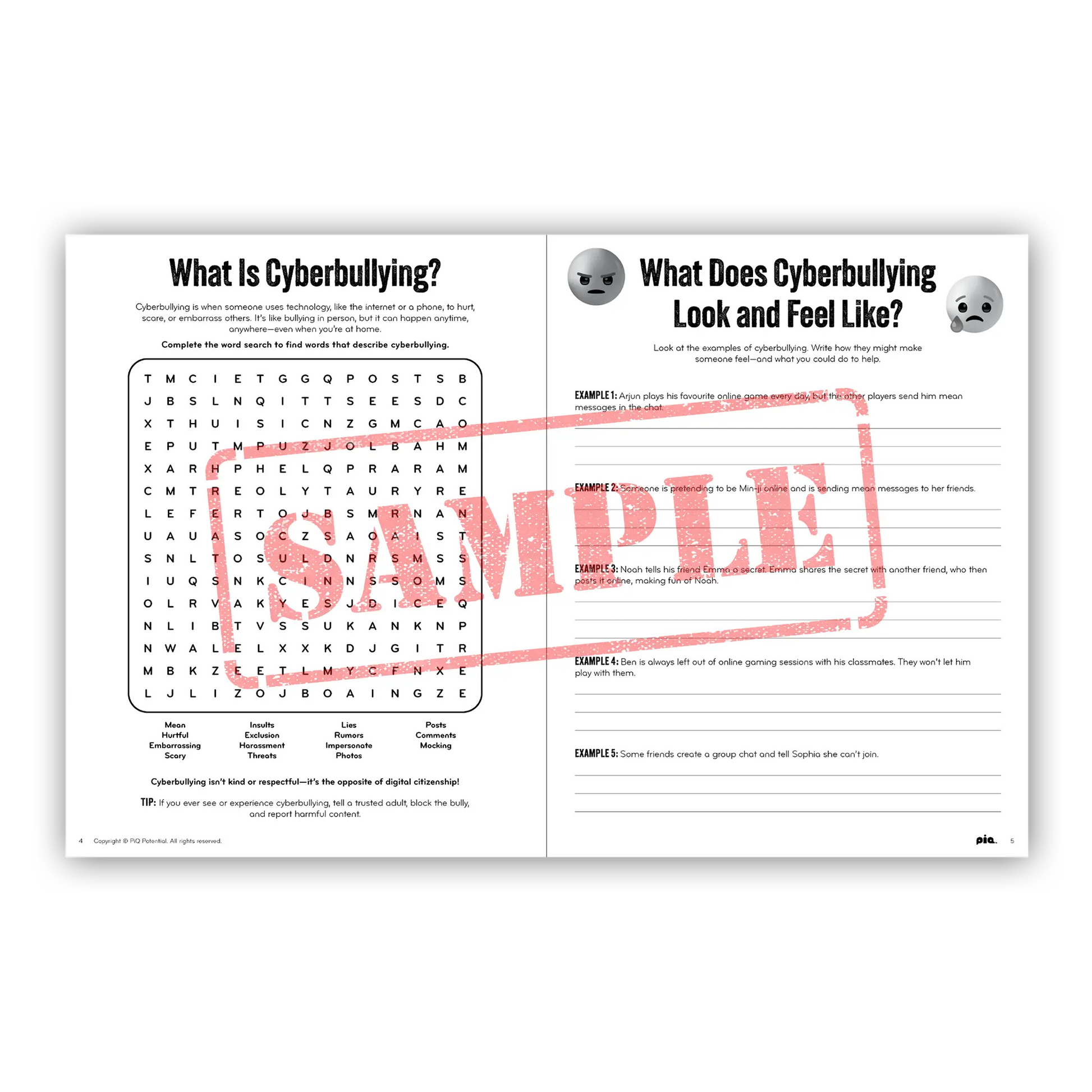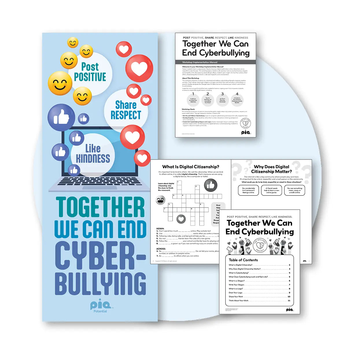- 10-Page Workshop Activity Booklet (PDF Download): Engage students in creating anti-cyberbullying messages and logos while exploring digital citizenship topics.