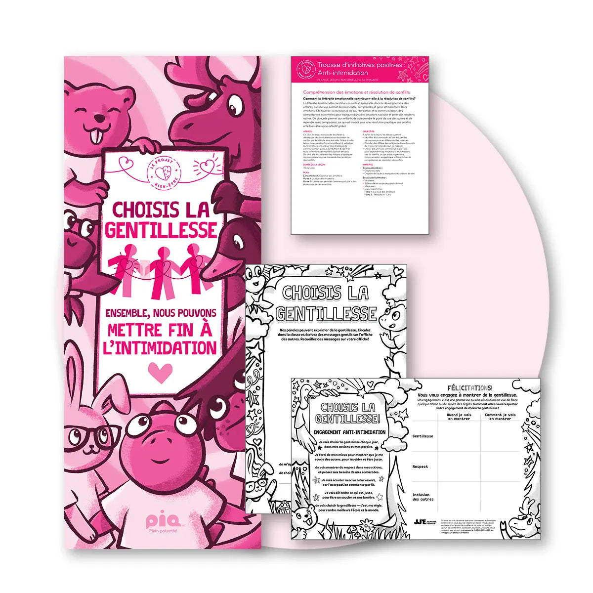 - En plus ! PiQ et Jeunesse, J’écoute se sont associés pour offrir aux élèves davantage de moyens d'accéder au soutien en santé mentale si eux ou un ami sont confrontés à de l'intimidation. Les informations de Jeunesse, J’écoute apparaissent sur les affiches d'activités des élèves.