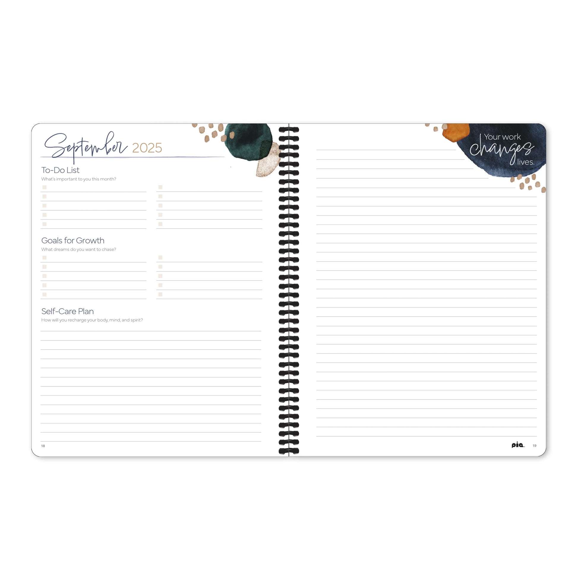 Insert the 2025-2026 Legacy Professional Planner Refill into an existing Legacy Professional Planner leatherette portfolio cover or use on its own.
