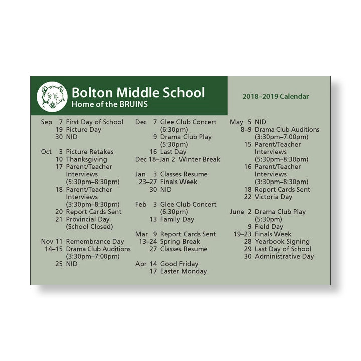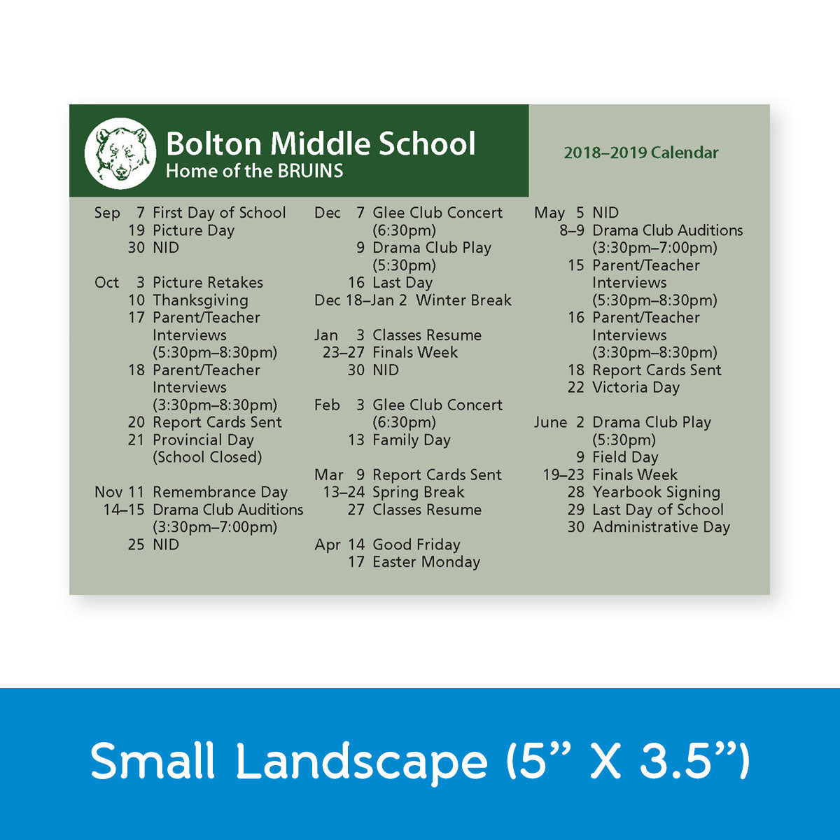 - A calendar event form with school important dates/events filled in. Maximum number of events for this style is 40.