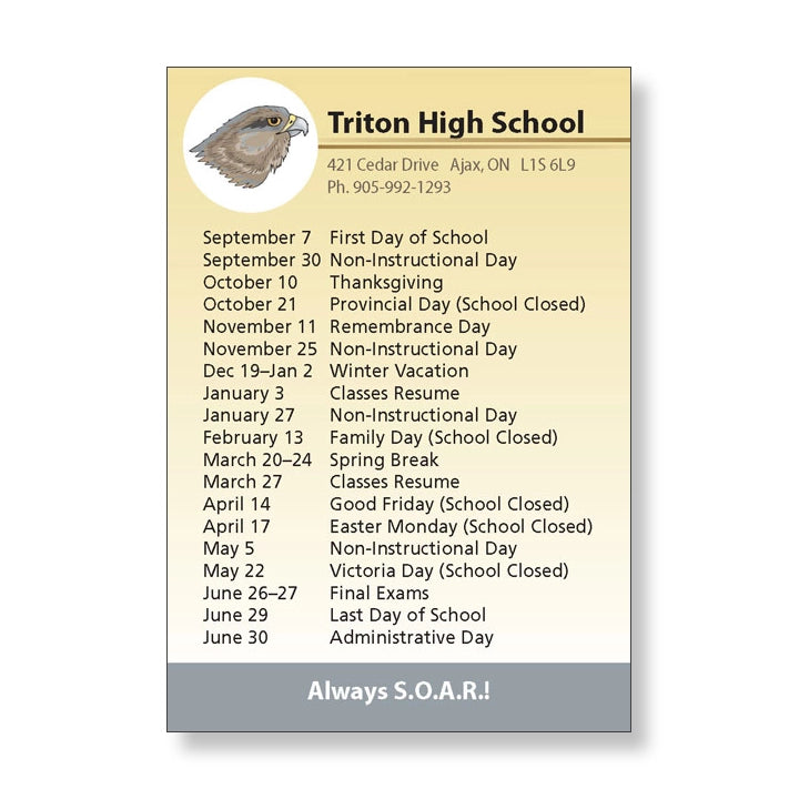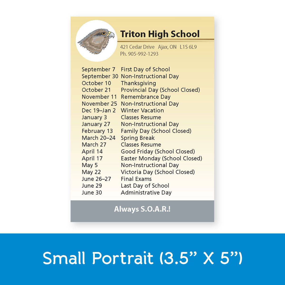 - A calendar event form with school important dates/events filled in. Maximum number of events for this style is 30.